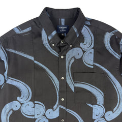 ヴィンテージの着物をほどき、一着ずつ丁寧に仕立てた長袖シャツ。落ち着きのある柄に、貝ボタンの上品な光沢を添えることで、さりげなく洗練された印象に仕上げました。